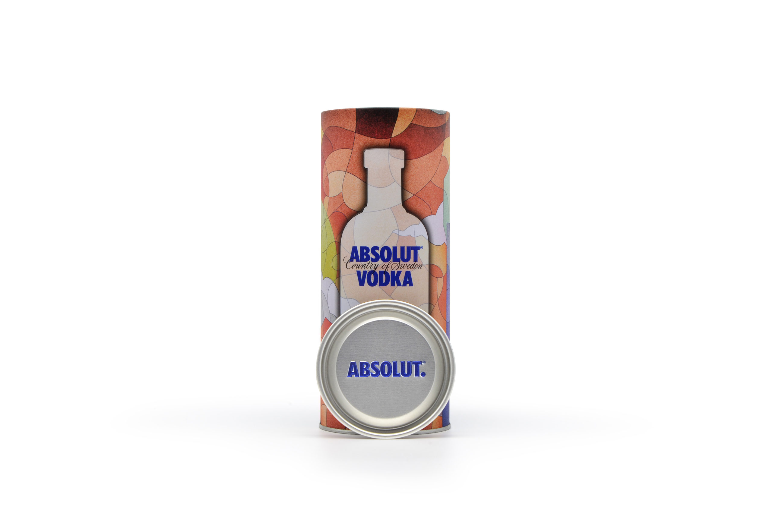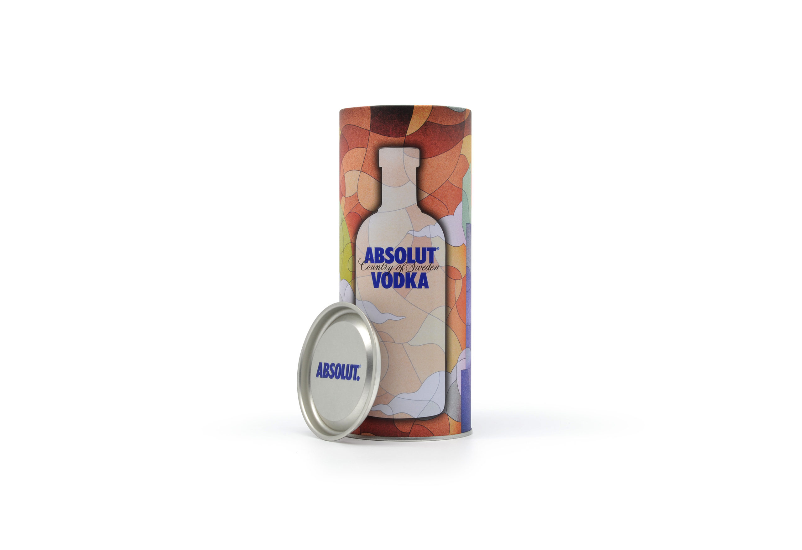 Embalagem de metal para garrafas da marca ABSOLUT.