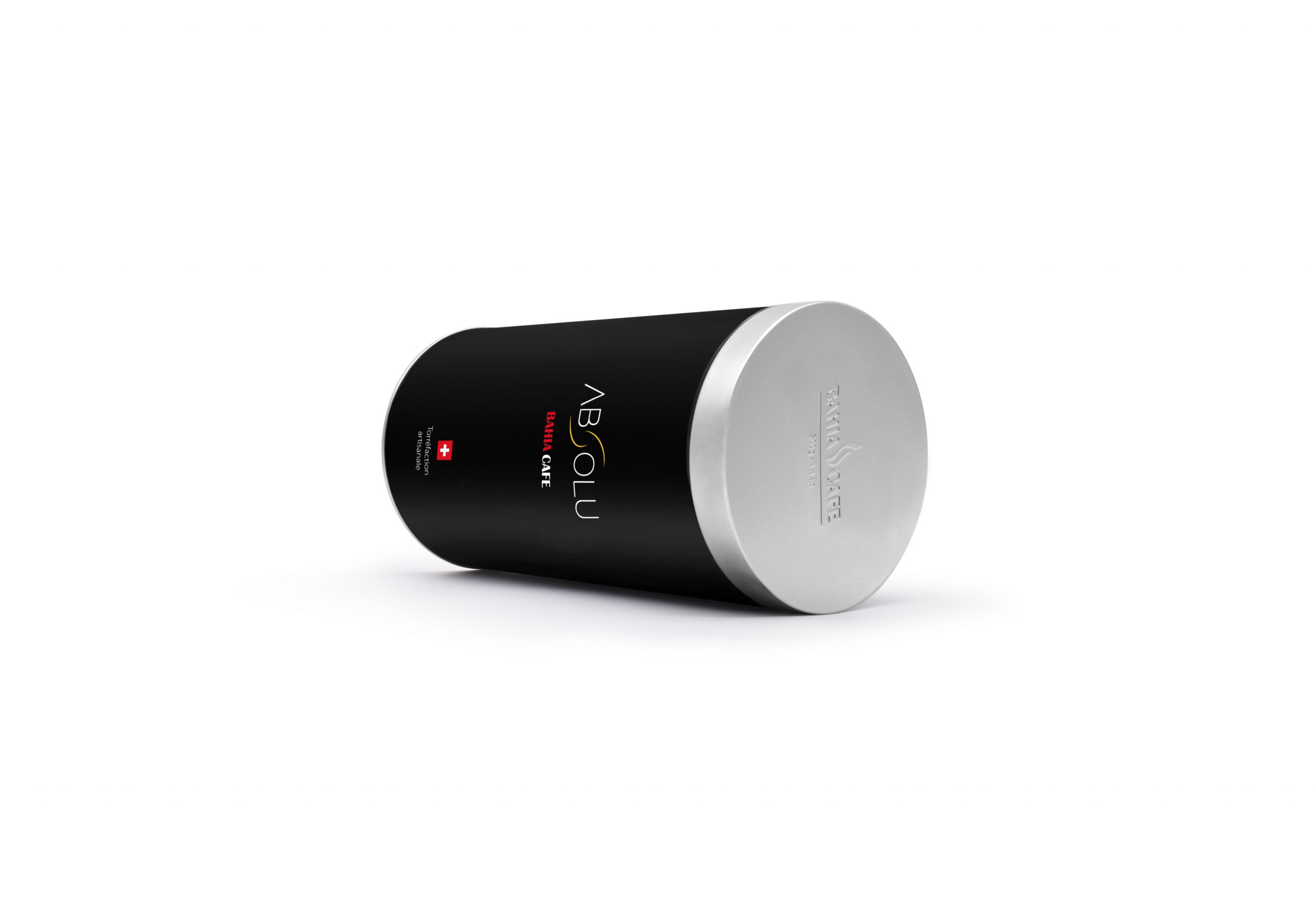 Embalagem de metal redonda para a marca BAHIA. Embalagem com gravação em relevo na tampa e totalmente personalizada com impressão Offset.