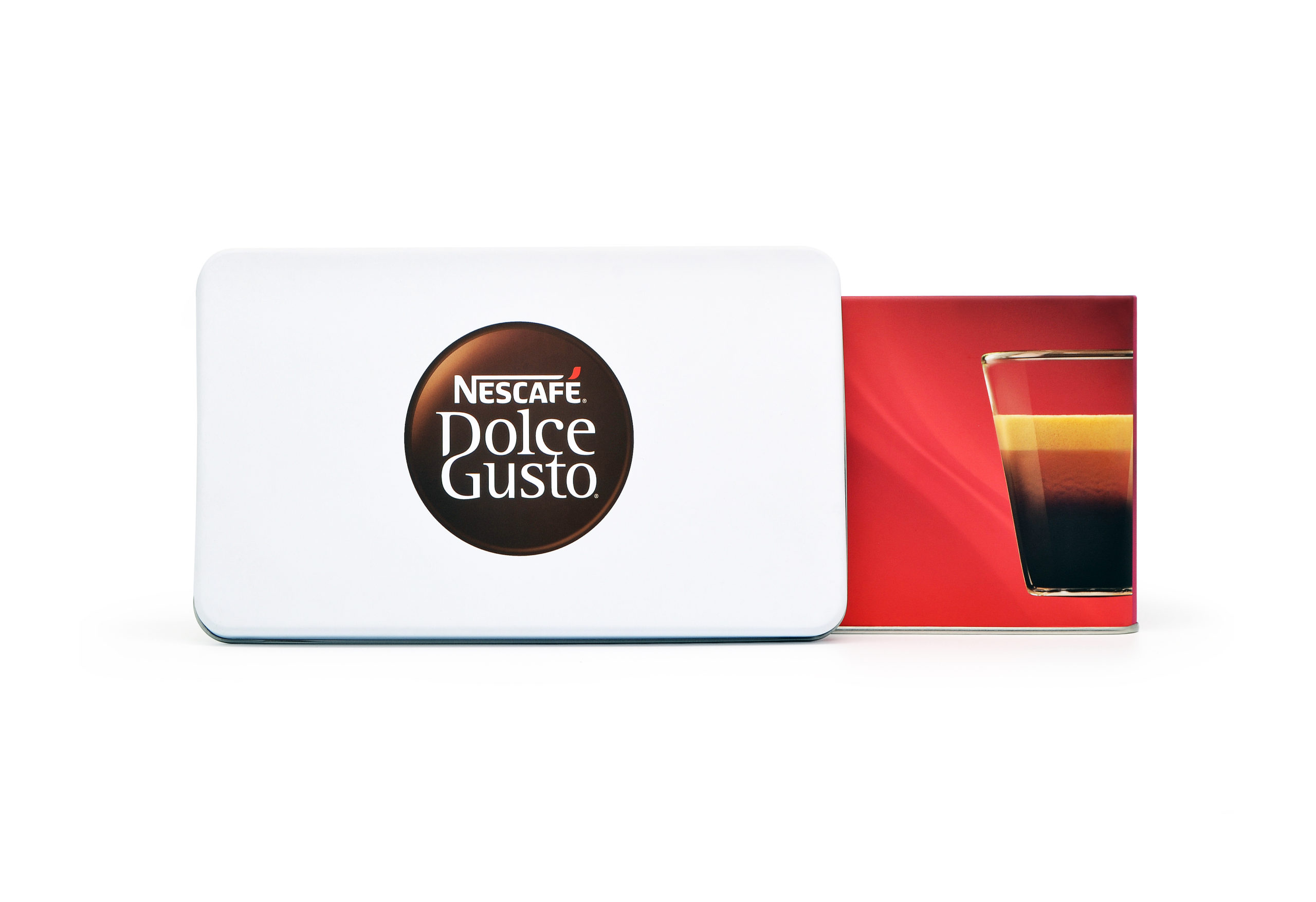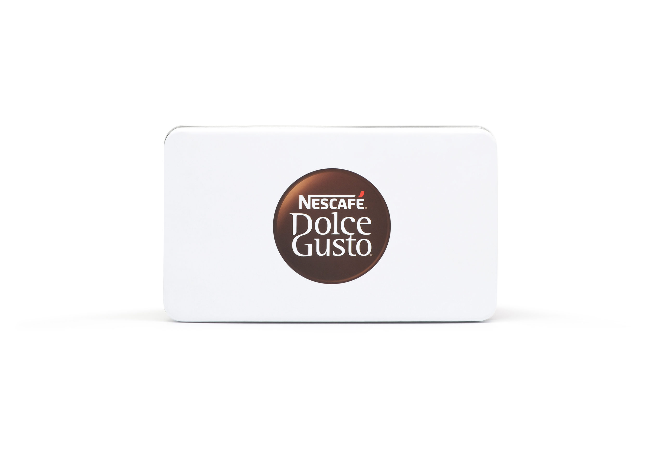 Embalagem de metal retangular para cápsulas de café NESCAFÉ DOLCE GUSTO.